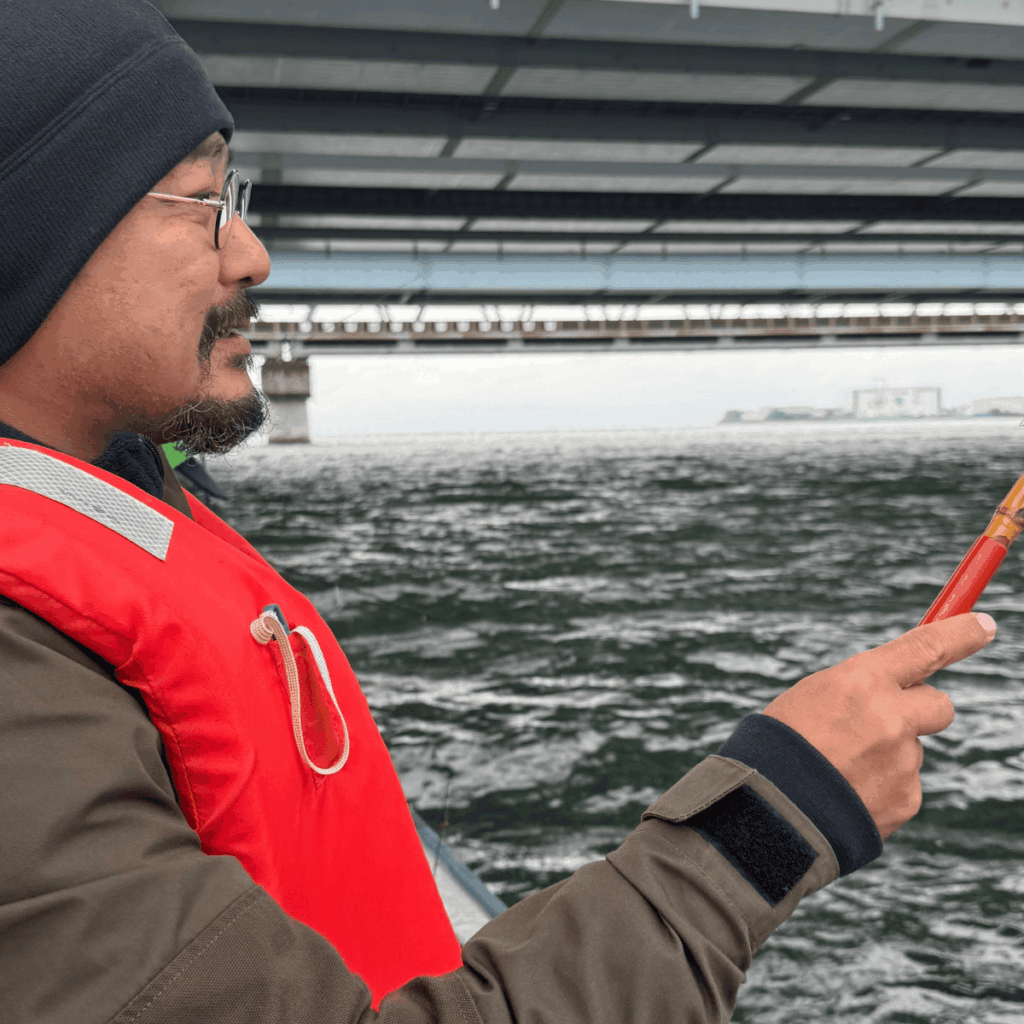 柔らかくもしなやかに応えるその竿で、落ちハゼ特有の力強い引きを味わう。