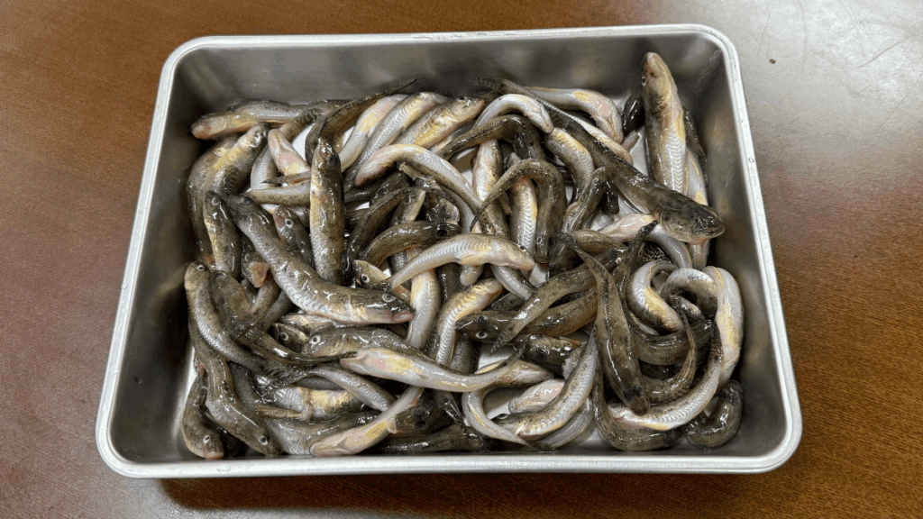 半分は煮干し用に、残りの大きなハゼは一夜干しにして焼いていただいた。